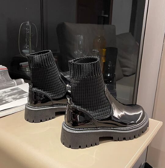 ショートブーツ レディース ブーツ 靴 シューズ ソックスブーツ 異素材ミックス ラウンドトゥ 厚底ブーツ 履きやすい 歩きやすい 疲れにくい 黒 ブラック カジュアル お出かけ おしゃれ 女性
