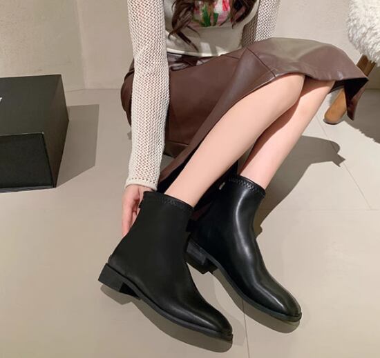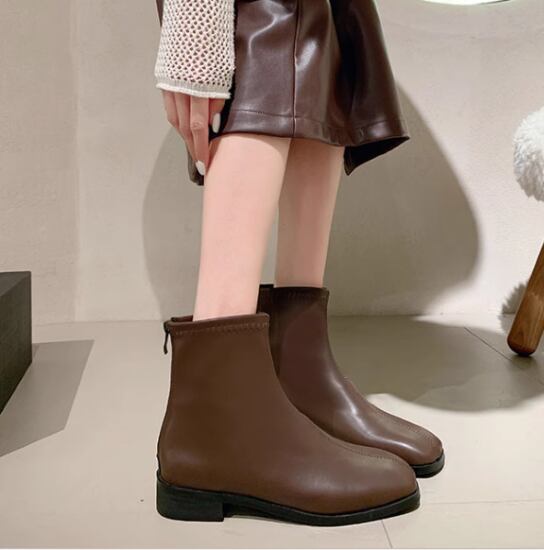 ショートブーツ レディース ブーツ 靴 シューズ シンプル 無地 バックジッパー ローヒール スクエアトゥ カジュアル お出かけ おしゃれ 履きやすい 歩きやすい 疲れにくい 秋冬 シック 女性