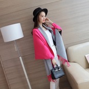 ニットカーディガン レディース ストール ショール マント 長袖 バットスリーブ フリンジ バイカラー スカーフ 袖付き 無地 あたたか きれいめ カジュアル 10color おでかけ おしゃれ