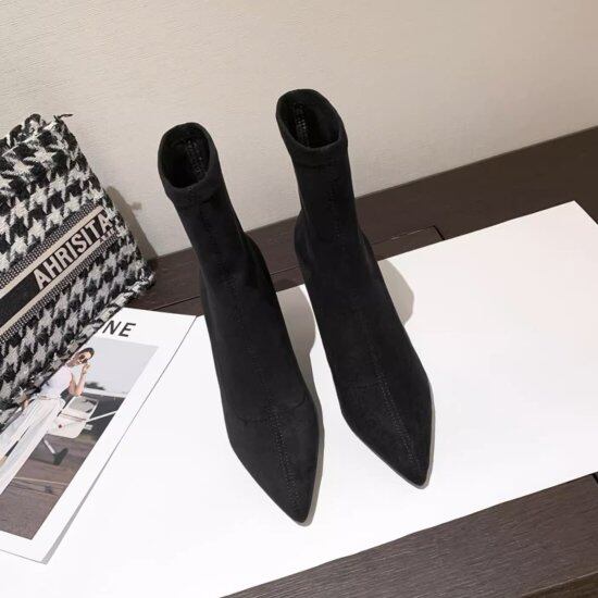 ショートブーツ レディース スエードブーツ ソックスブーツ ポインテッドトゥ ピンヒール ハイヒール 選べる 6cmヒール 8cmヒール フェイクレザー きれいめ エレガント カジュアル おしゃれ