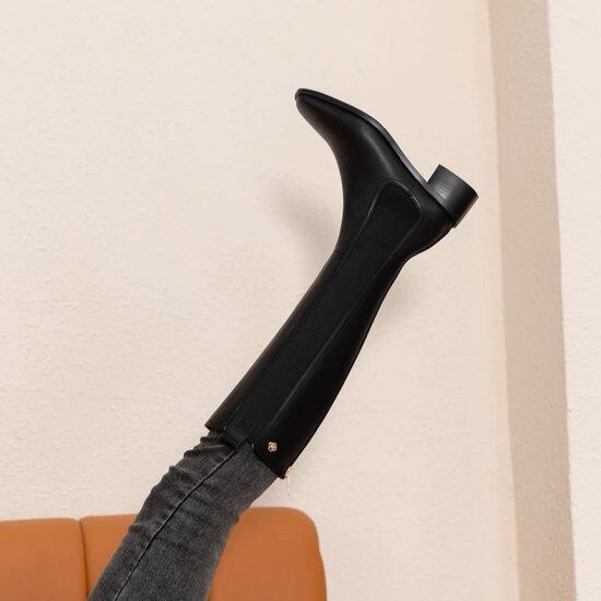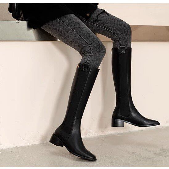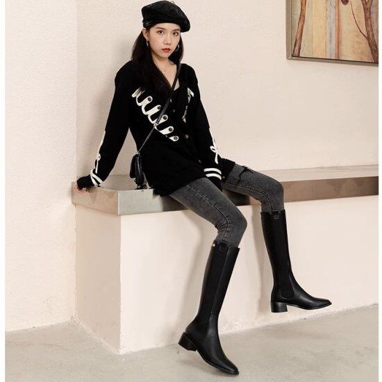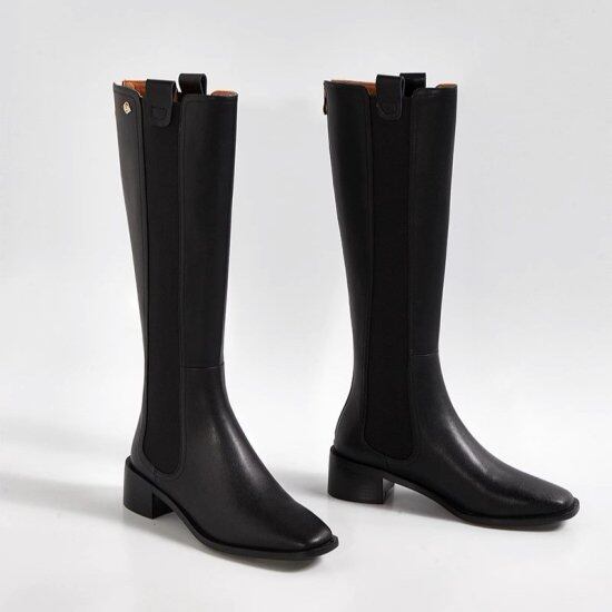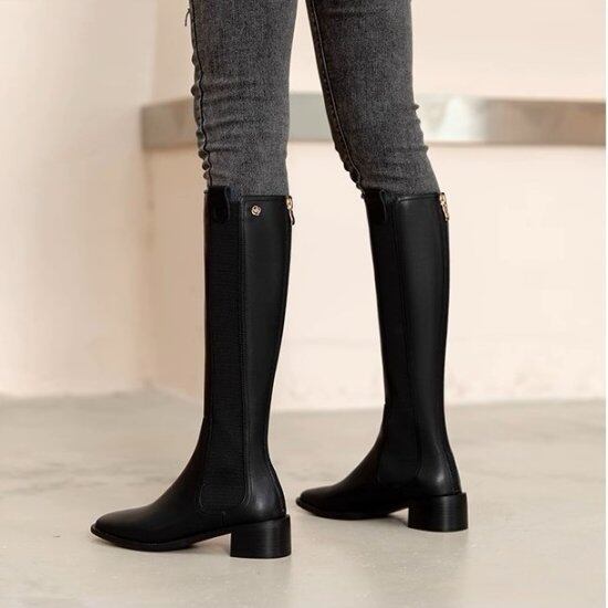 ロングブーツ レディース サイドゴアブーツ スクエアトゥ バックファスナー 太ヒール ローヒール 4.5cmヒール スリム タイト シンプル きれいめ カジュアル 2color オフィス おしゃれ