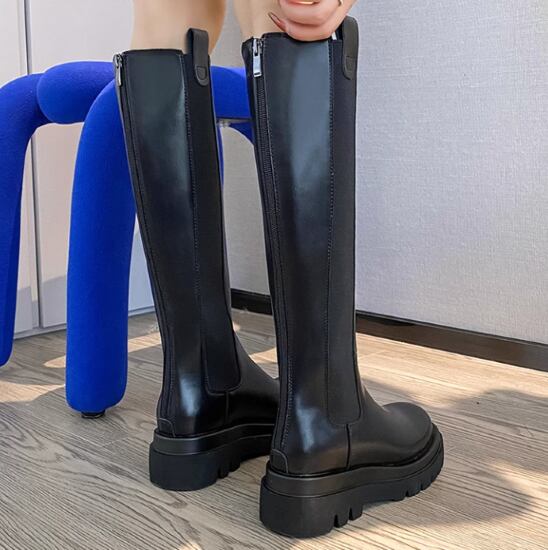 ロングブーツ レディース ブーツ 靴 シューズ 厚底ブーツ ナイトブーツ バックジッパー ラウンドトゥ カジュアル お出かけ おしゃれ 履きやすい 歩きやすい 疲れにくい 黒 ブラック 秋冬 美脚