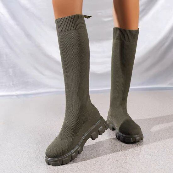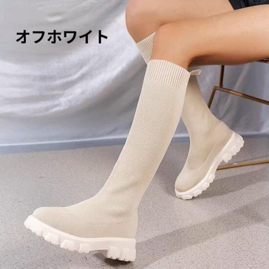 ロングブーツ レディース ソックスブーツ ニットブーツ 厚底 ラウンドトゥ プラットフォーム フラット スリム ストレッチ 個性的 ユニーク 4color ユニセックス カジュアル おしゃれ