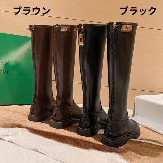 ロングブーツ レディース ラウンドトゥ ベルト バックファスナー ストレッチ 太ヒール ローヒール 2.5cmヒール ジョッキーブーツ ライダーブーツ シンプル 美脚 きれいめ カジュアル おしゃれ