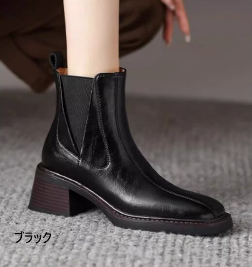 ショートブーツ レディース ブーツ 靴 シューズ 太ヒール チャンキーヒール スクエアトゥ サイドゴアブーツ カジュアル お出かけ おしゃれ クラシカル ファッションブーツ 黒 茶 ブラック ブラウン