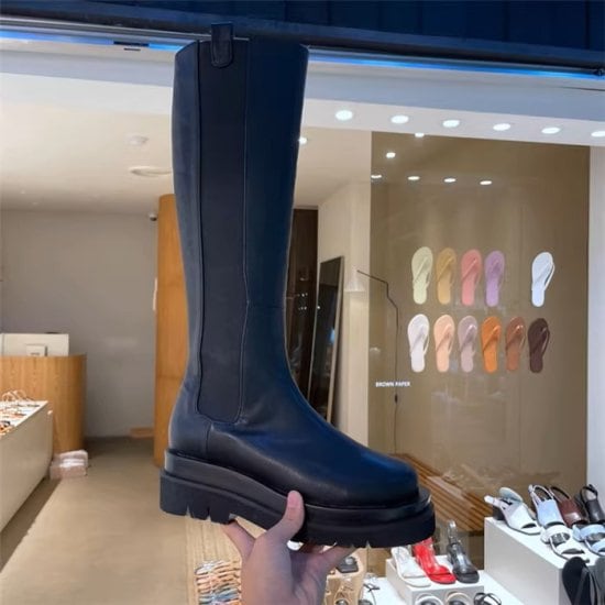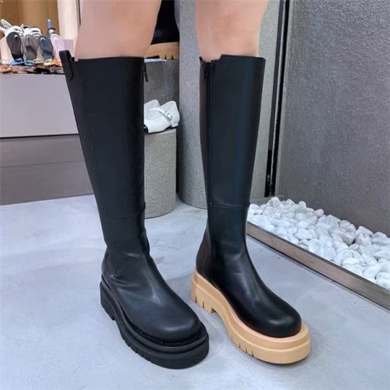バイカラーデザインがおしゃれなサイドゴアロングブーツ。
