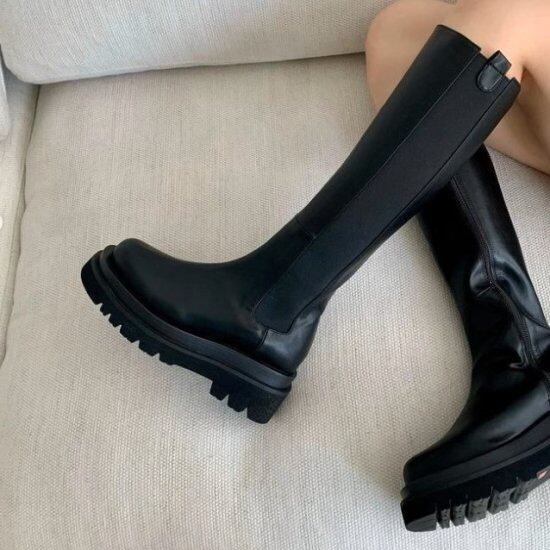ロングブーツ レディース サイドゴアブーツ バイカラー チェルシーブーツ ラウンドトゥ フェイクレザー エコレザー 6cmヒール サイドファスナー 厚底ブーツ 脚長 カジュアル 歩きやすい おしゃれ
