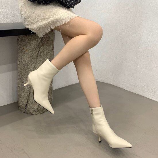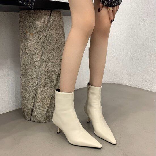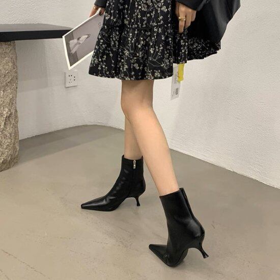 ショートブーツ レディース ポインテッドトゥ ピンヒール 細ヒール サイドファスナー ハイヒール 6cmヒール スリム アンクルブーツ きれいめ 上品 エレガント カジュアル 美脚 脚長 おしゃれ