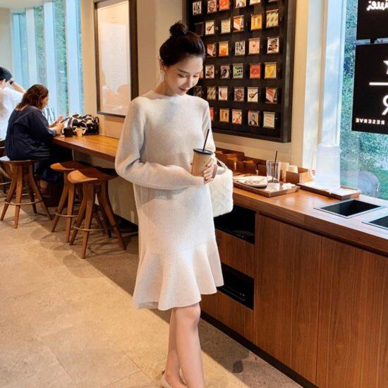優雅に揺れるフリル裾がかわいいニットワンピース。