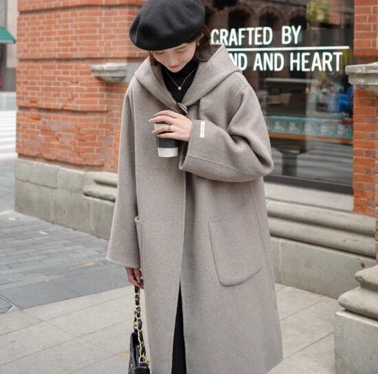 ロングコート レディース コート ロング丈 アウター 羽織 フード付き 長袖 シンプル 無地 ポケット カジュアル お出かけ おしゃれ ファッション 秋冬 ウールコート きれいめ 通勤通学 女性