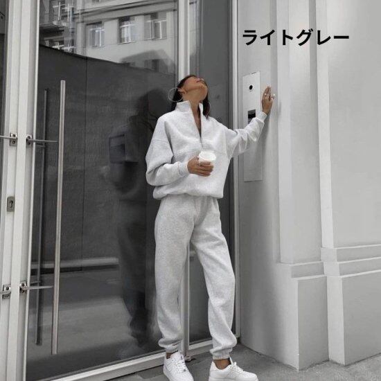 セットアップ レディース スウェット 上下セット ハーフジップ プルオーバー 長袖 スウェットパンツ ウエストゴム ゆったり スポーツウェア あたたか 2点セット スポーティー カジュアル おしゃれ