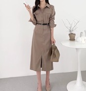 きれいめデザインのシャツワンピース。