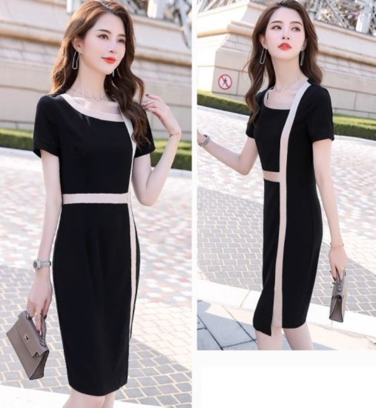 ワンピース レディース 半袖ワンピース バイカラー タイトワンピース ラウンドネック ひざ丈 ミモレ丈 ライン クラシカル レトロ スタイリッシュ きれいめ おでかけ お呼ばれ オフィス おしゃれ