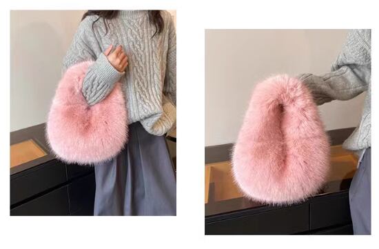 ふわふわの手触りが心地いいハンドバッグ。