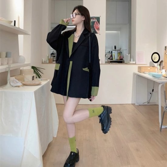 バイカラーデザインがおしゃれなオーバーサイズジャケット。