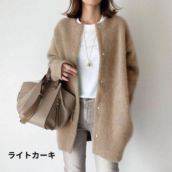 カーディガン レディース コーディガン 長袖 ラウンドネック ロングカーディガン コート ロング丈 コクーン 7color レトロ フリース ニット カジュアル あたたか おでかけ おしゃれ