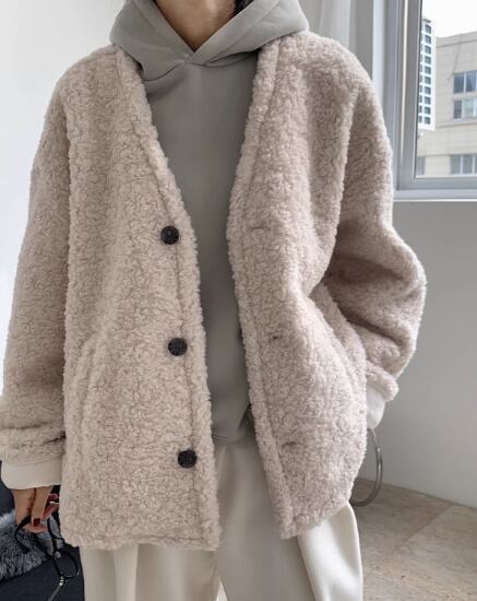 ボアジャケット レディース アウター 羽織 ボアカーディガン ショートコート Vネック 長袖 フロントボタン もこもこ シンプル 無地 暖かい カジュアル お出かけ おしゃれ 厚手 秋冬 ファッション
