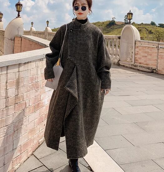 ロングコート レディース アウター 羽織 コート ゆったり ルーズ オーバーサイズ 千鳥格子柄 長袖 レトロ シック カジュアル お出かけ おしゃれ きれいめ シングルブレスト 秋冬 女性 ロング丈
