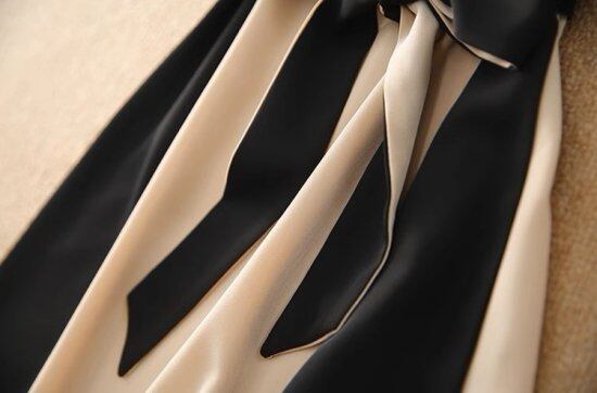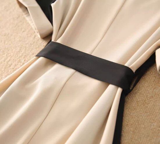 バイカラーデザインが目を惹くVネックワンピース。