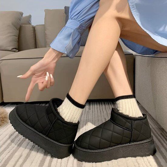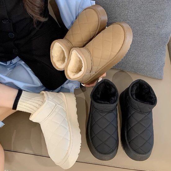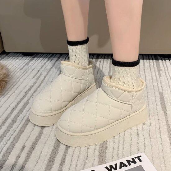 ショートブーツ レディース キルティング アンクルブーツ 厚底ブーツ フェイクレザー フラット ローヒール 3.5cmヒール ボア かわいい カジュアル あたたか 防寒 スノーブーツ おしゃれ