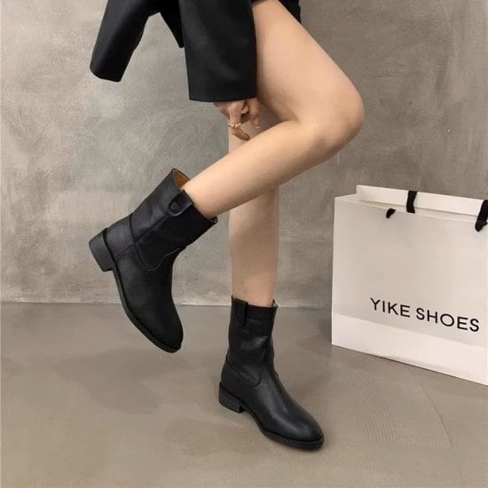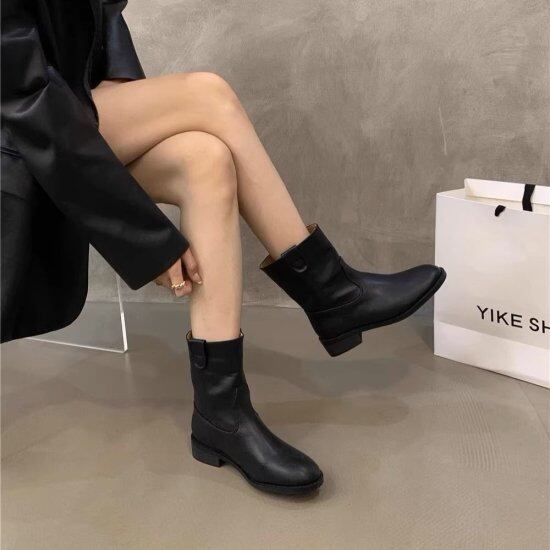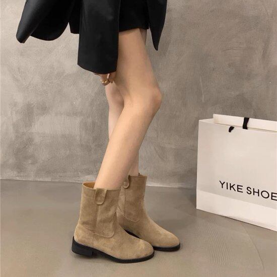 ショートブーツ レディース ウェスタンブーツ ラウンドトゥ スエード フェイクレザー 太ヒール ローヒール 3cmヒール 2color ハーフブーツ カジュアル ショート丈 美脚 脚長 おしゃれ