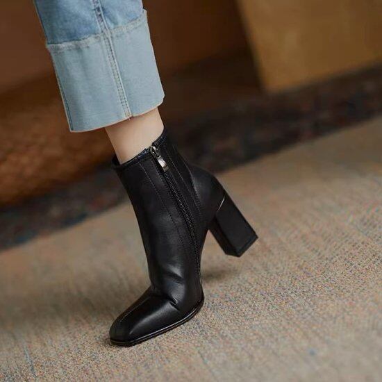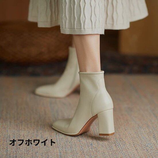 ショートブーツ レディース スクエアトゥ アンクルブーツ ブーティ サイドファスナー 太ヒール チャンキーヒール 5cmヒール きれいめ エレガント 大人 カジュアル オフィス 脚長 美脚 おしゃれ