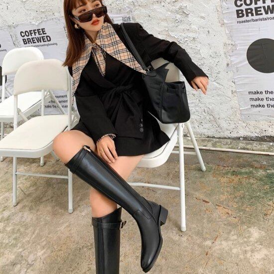 ストレートな筒丈で美脚を演出するロングブーツ。