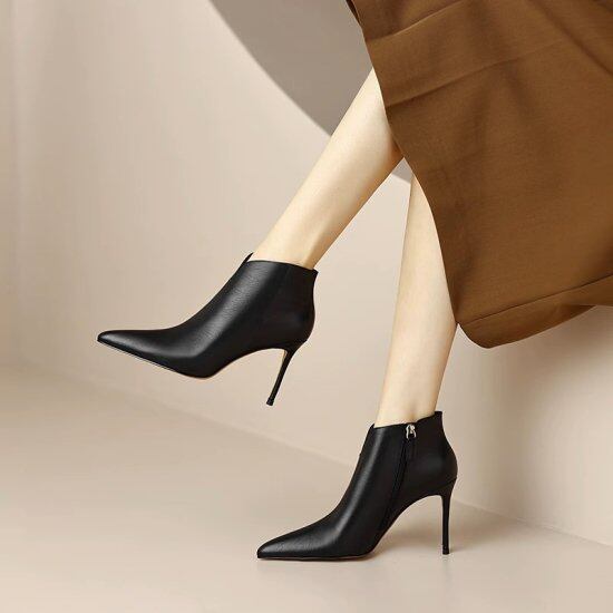 ショートブーツ レディース ブーティ アンクルブーツ ポインテッドトゥ Vカット ピンヒール ハイヒール 8cmヒール サイドファスナー スリム きれいめ エレガント パーティー 美脚 おしゃれ