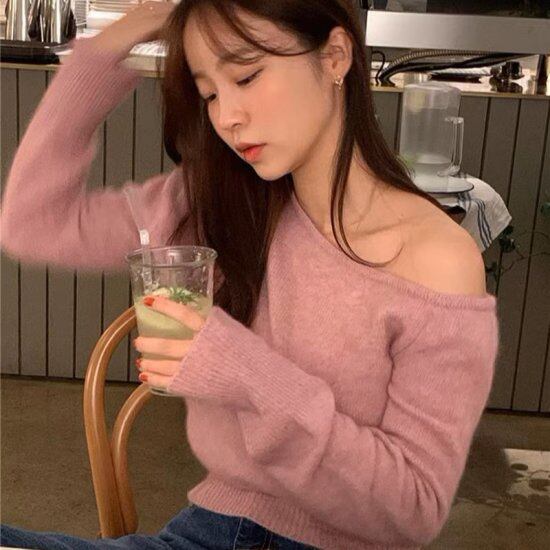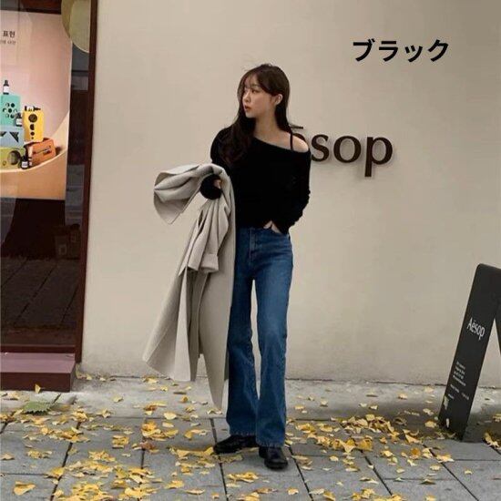 ニットセーター レディース ワンショルダー 長袖 プルオーバー オフショルダー ニット ボートネック セーター ショート丈 レトロ かわいい きれいめ ガーリー カジュアル 2color おしゃれ