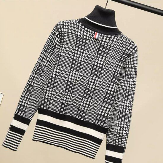 ニットセーター レディース チェック柄 タートルネック ハイネック 長袖 グレンチェック ボーダー セーター プルオーバー レトロ クラシカル かわいい カジュアル おでかけ オフィス おしゃれ