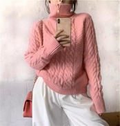 ニットセーター レディース ハーフジップ 長袖 ケーブルニット ハイネック 襟付き ケーブル編み プルオーバー レトロ かわいい きれいめ ガーリー カジュアル 4color あたたか おしゃれ
