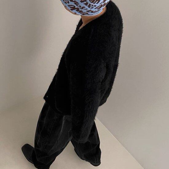 ふわふわの質感がかわいいニットカーディガン。