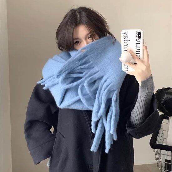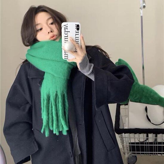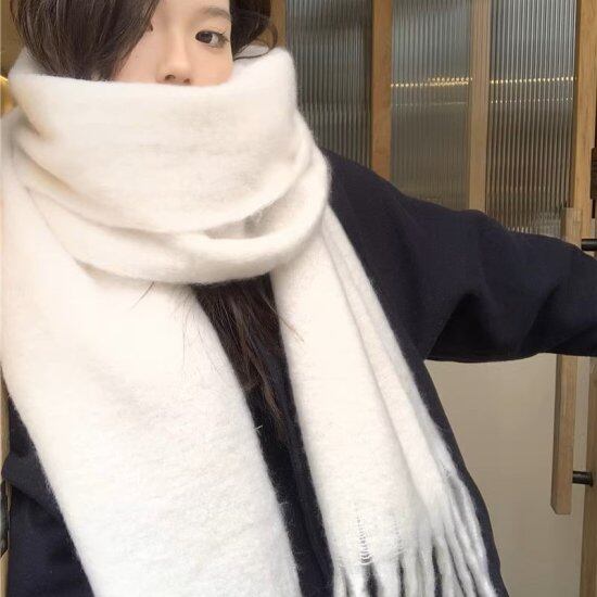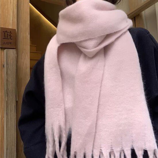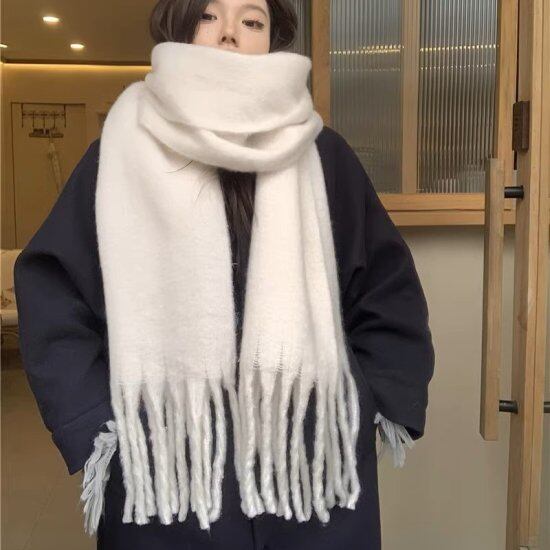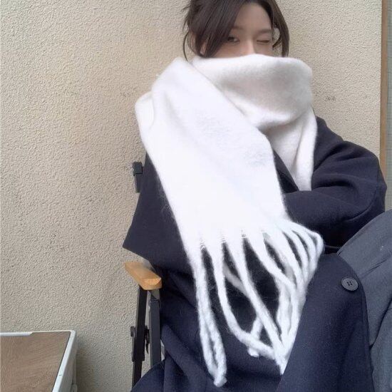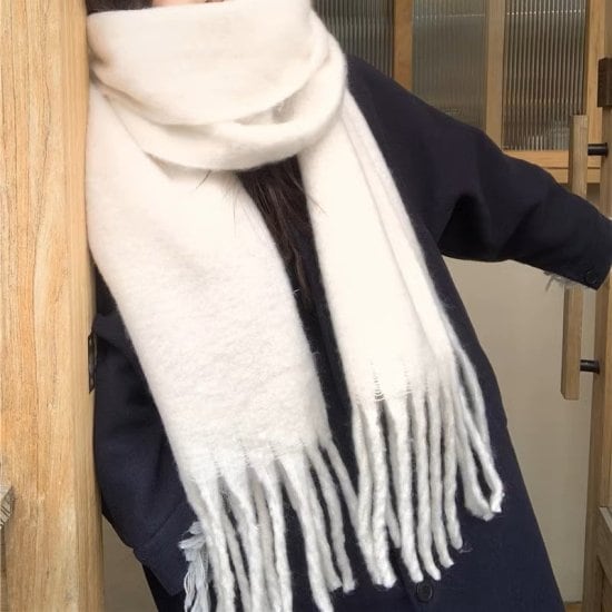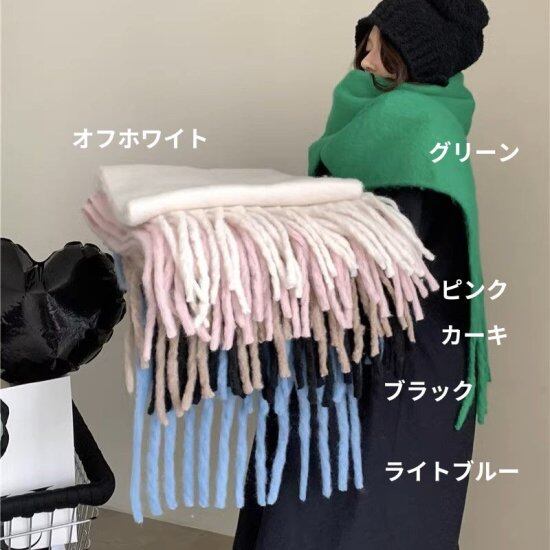 マフラー レディース ストール ショール ソフトタッチ ボリューム 無地 フリンジ タッセル ユニセックス レトロ かわいい きれいめ ガーリー カジュアル あたたか 防寒 おでかけ おしゃれ
