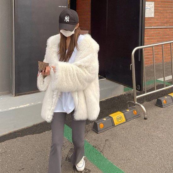 ファーコート レディース ショートコート フェイクファー エコファー 長袖 テーラードカラー ガウンコート ボリューム オーバーサイズ かわいい ガーリー きれいめ カジュアル レトロ おしゃれ