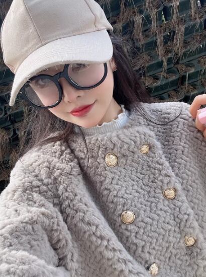 ボアジャケット レディース アウター 羽織 ジャケット 長袖 もこもこ ノーカラー ダブルブレスト ラウンドネック 金ボタン ゴールドボタン カジュアル きれいめ エレガント お出かけ おしゃれ
