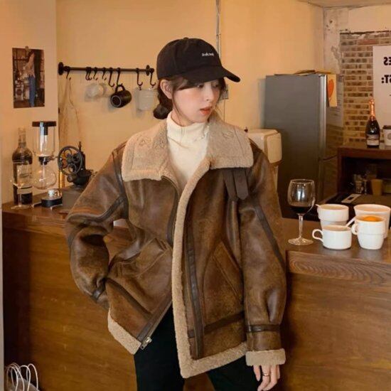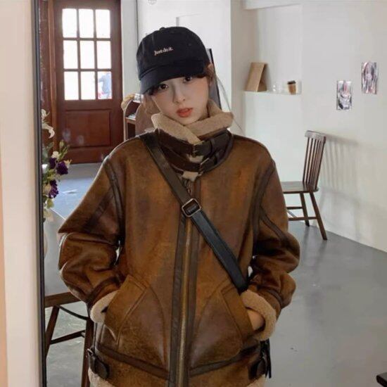 ヴィンテージ感がおしゃれなライダース風ジャケット。