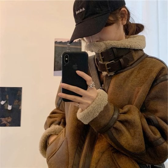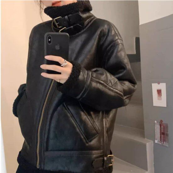 レザージャケット レディース ライダースジャケット ボアジャケット 長袖 スタンドカラー フェイクレザー ベルト ヴィンテージ レトロ マニッシュ メンズライク ユニセックス カジュアル おしゃれ