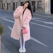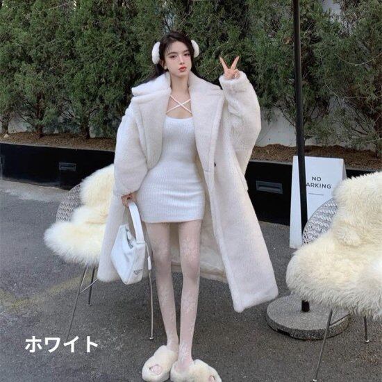 ファーコート レディース ロングコート オーバーサイズ テーラードカラー Vネック 長袖 ボリューム袖 ロング ミディアム ビッグシルエット カラフル フェイクファー かわいい カジュアル おしゃれ