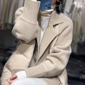 ダウンジャケット レディース 異素材ミックス ニット 切り替え 長袖 テーラードカラー ボタン ダブルブレスト レトロ ドッキング コート きれいめ カジュアル エレガント オフィス おしゃれ