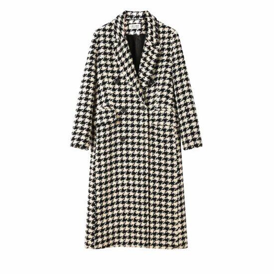 クラシカルな雰囲気の千鳥格子柄ロングコート。
