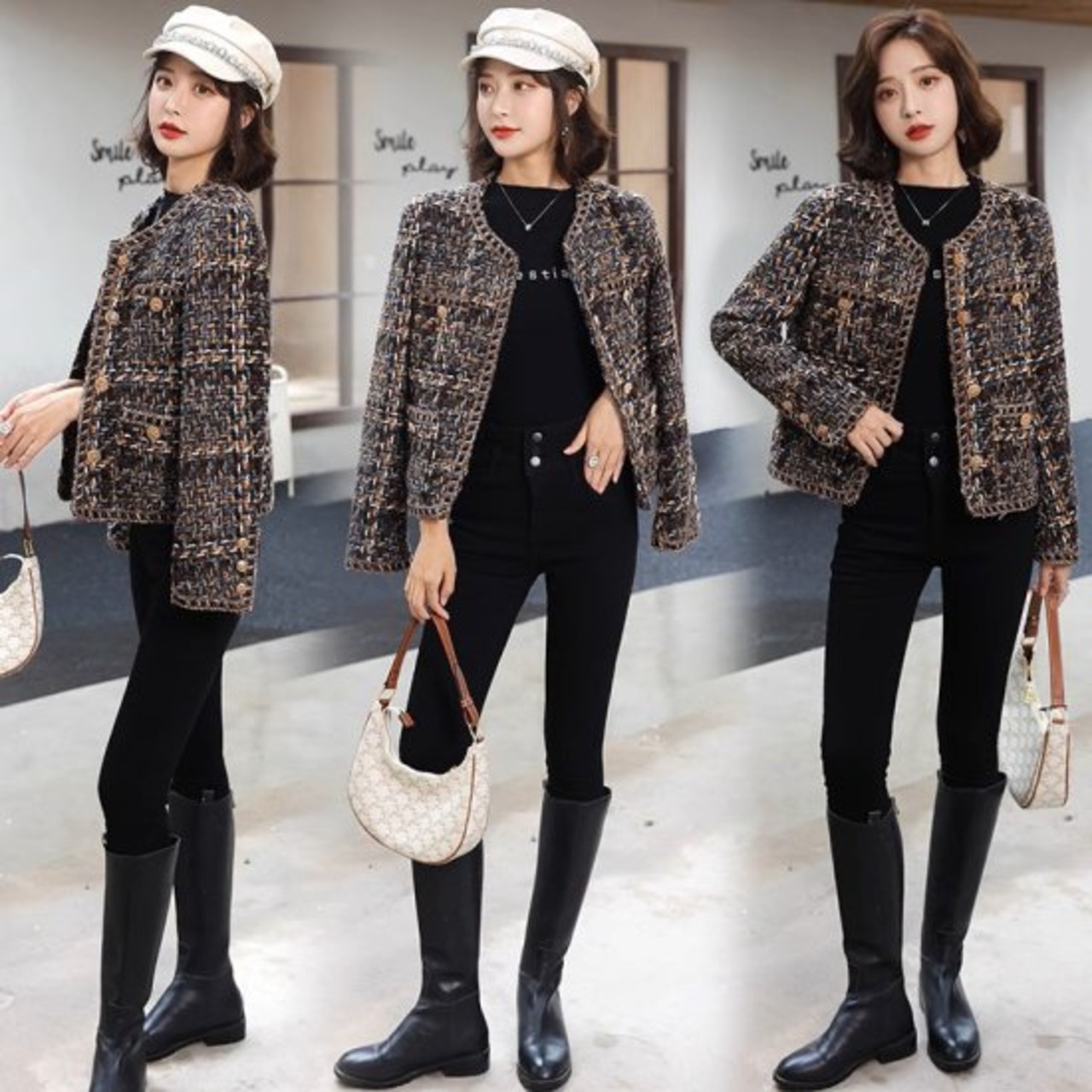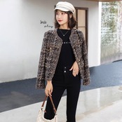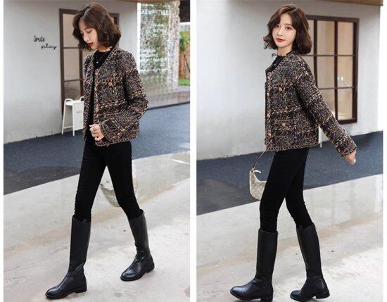ツイードジャケット レディース ノーカラージャケット ラウンドネック 長袖 ミックスツイード ショートジャケット レトロ クラシカル きれいめ 上品 エレガント カジュアル オケージョン おしゃれ