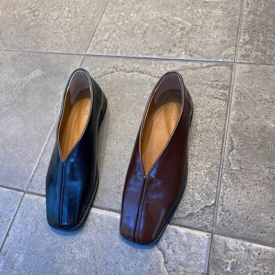フラットシューズ レディース スクエアトゥ Ⅴカット ローヒール 1.5cmヒール フェイクレザー エコレザー マニッシュ 個性的 2color きれいめ カジュアル オフィス 歩きやすい おしゃれ