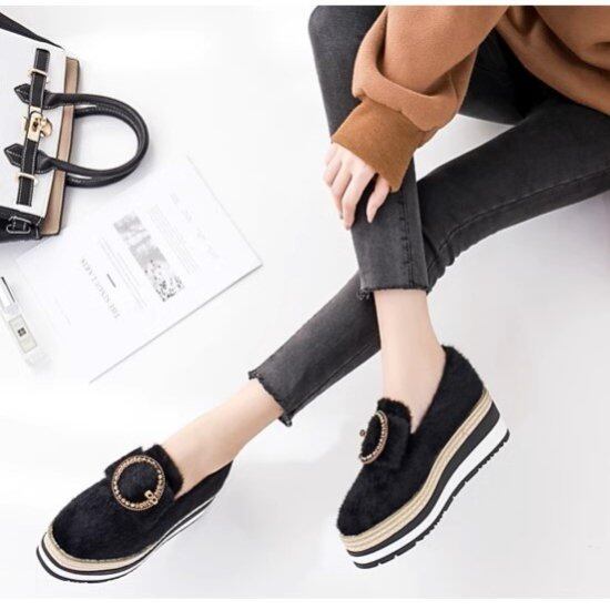 フラットシューズ レディース ボア 厚底 フェイクファー ふわふわ バックル ラインソール ハイヒール 7cmヒール フラット 毛皮 2color かわいい ガーリー カジュアル 脚長 おしゃれ