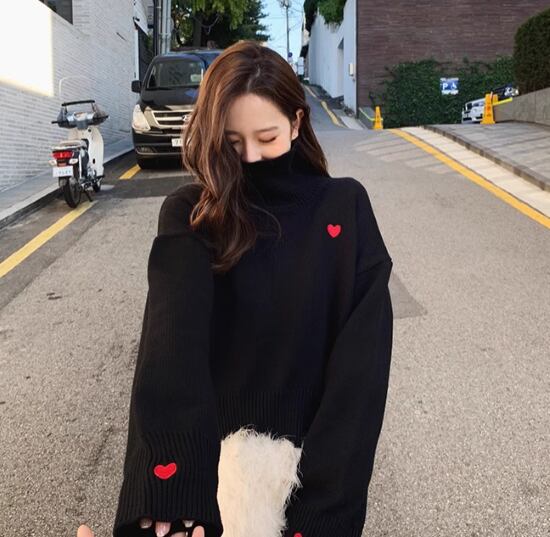 ニットセーター レディース トップス ニット セーター 長袖 タートルネック ハート柄 キュート バイカラー 秋冬 厚手 暖かい ゆったり ルーズ 可愛い カジュアル お出かけ おしゃれ プルオーバー