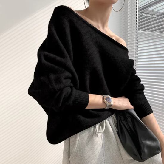 ニットセーター レディース トップス ニット セーター オフショルダー 肩出し セクシー シンプル 無地 ゆったり ルーズ 長袖 カジュアル お出かけ おしゃれ きれいめ プルオーバー ファッション