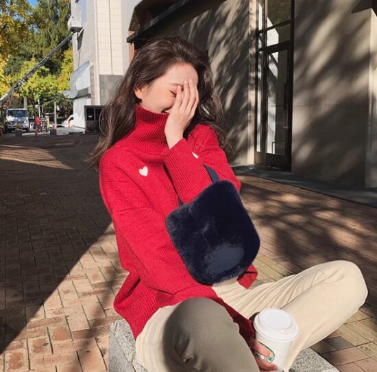 ニットセーター レディース トップス ニット セーター 長袖 タートルネック 暖かい 秋冬 ハート柄 可愛い キュート バイカラー プルオーバー ゆったり ルーズ カジュアル お出かけ おしゃれ