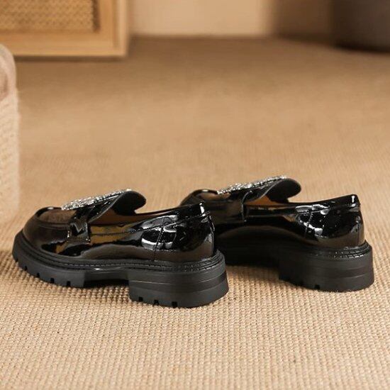 ローファー レディース ビジュー 厚底 エナメル調 フェイクレザー エコレザー 4cmヒール バックル レトロ クラシカル きれいめ カジュアル エレガント おでかけ お呼ばれ フォーマル おしゃれ