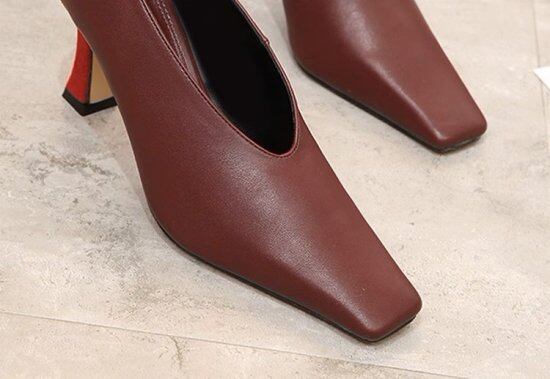パンプス レディース ブーティ Vカット スクエアトゥ ハイヒール 選べるヒール高 6cmヒール 8cmヒール レトロ クラシカル きれいめ カジュアル 3color エレガント 個性的 おしゃれ