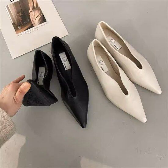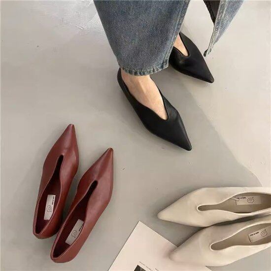 パンプス レディース フラットシューズ Vカット ポインテッドトゥ フェイクレザー エコレザー ローヒール レトロ 柔らか ソフト ドライビングシューズ 3color きれいめ カジュアル おしゃれ