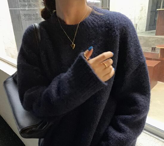 ニットセーター レディース トップス プルオーバー ニット セーター シンプル 無地 長袖 ラウンドネック ゆったり ルーズ カジュアル お出かけ おしゃれ 定番 ベーシック 秋冬 きれいめ 柔らかい